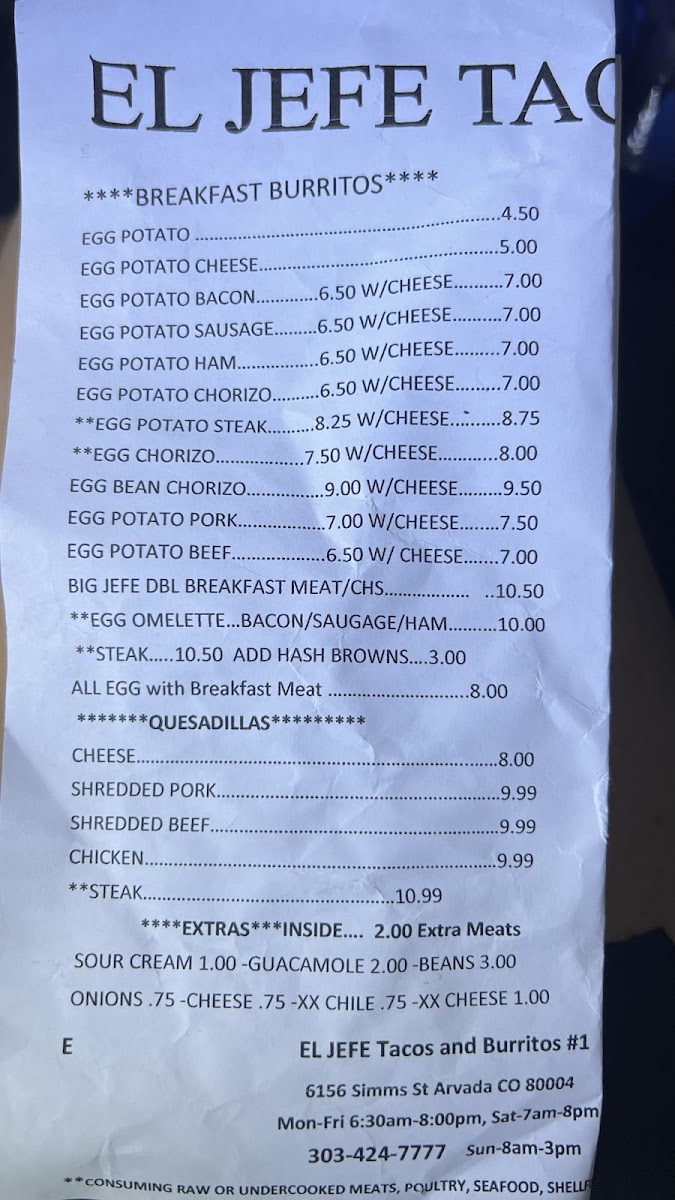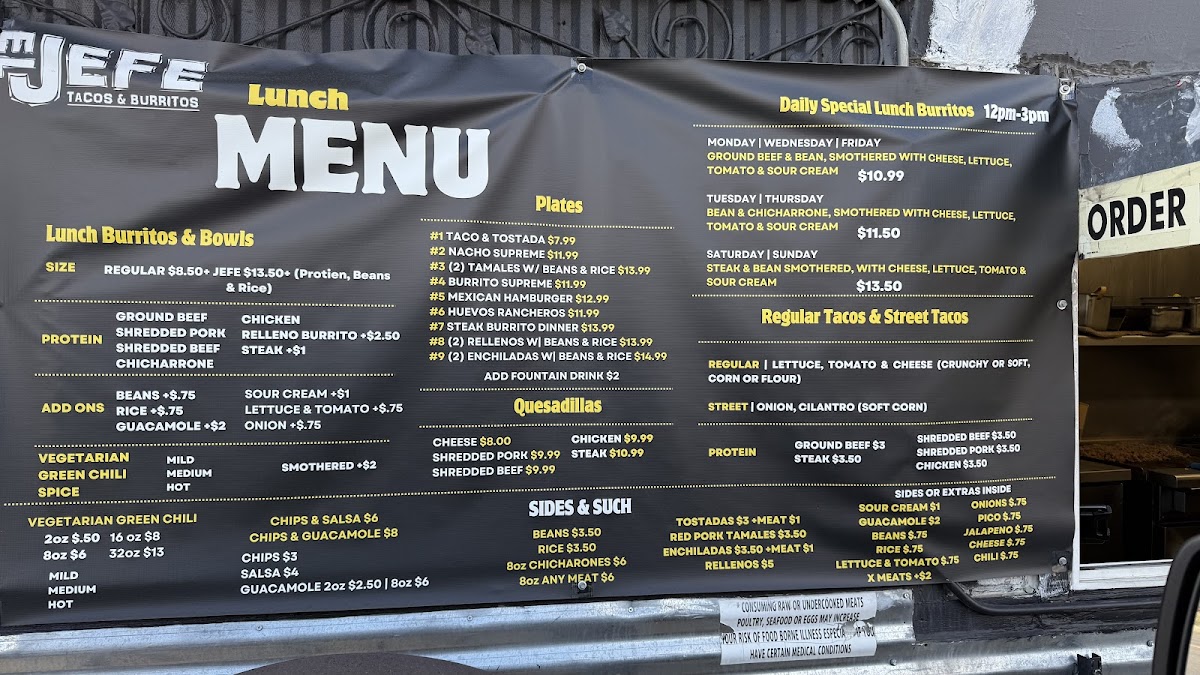 EL Jefe Tacos and Burritos #2 Menu (2025 Update)